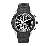 This classic timepiece by Seiko for men offers a stainless steel case and black rubber strap. The black chronograph dial features a precise Japanese quartz movement, a date window, as well as luminescent hands and markers. The watch is protected by a scratch-resistant hardlex crystal and a water-resistance level of up to 100 meters. Read more