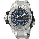 Seiko 5 Mile Marker Collection. Stainless steel case and bracelet with black plastic composite on case. Dark Blue Dial with black and white hands and markers. Calculates traveling distances and compass direction using classic, reliable technology. The left crown is used to trace distance on a map. Maps using the 1:50000 M scale can be read directly. Day and date with Spanish option. Precise 23 jewels self-winding automatic movement. Scratch resistant Hardlex crystal. Screwdown caseback. Screwdown crown. Luminous Hands and Markers. Fold-over push button deployment clasp with Micro Adjustment. Water Resistant to 200m. Case measures 43mm diameter by 15mm thick. 3 years original manufacturer warranty. Read more
