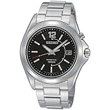 The Seiko Men's Kinetic Stainless Steel Watch features many high-tech features hidden behind a stylish exterior. Protected by a mineral Hardlex crystal, this watch's attractive black dial features silver-toned baton and Arabic hour markers and silver-toned hands. Backed by a stainless steel case, the dial also features a date window at the three o'clock position. Keeping all of this securely on your wrist is a two-tone stainless steel bracelet that closes with fold-over push-button safety clasp. Precise kinetic Japanese quartz movement and water-resistance to 330 feet (100 meters) make this watch reliable and durable.The Seiko Men's Kinetic Stainless Steel Watch features many high-tech features hidden behind a stylish exterior. Protected by a mineral Hardlex crystal, this watch's attractive black dial features silver-toned baton and Arabic hour markers and silver-toned hands. Backed by a stainless steel case, the dial also features a date window at the three o'clock position. Keeping all of this securely on your wrist is a two-tone stainless steel bracelet that closes with fold-over push-button safety clasp. Precise kinetic Japanese quartz movement and water-resistance to 330 feet (100 meters) make this watch reliable and durable. Read more