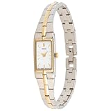 With its slim, artistic profile, this Seiko Women's Watch is a versatile addition to any wardrobe. Featuring a white rectangular dial, gold-tone hands, and stick indices, all protected by a hardlex crystal and framed by a gold-tone band on a silver-tone brass bezel, this timepiece utilizes reliable Japanese quartz movement. Its 13-millimeter case and 9-millimeter bracelet band with jewelry clasp are precisely crafted from brass and finished in silver- and gold-tones. This watch is water resistant to 99 feet. Read more